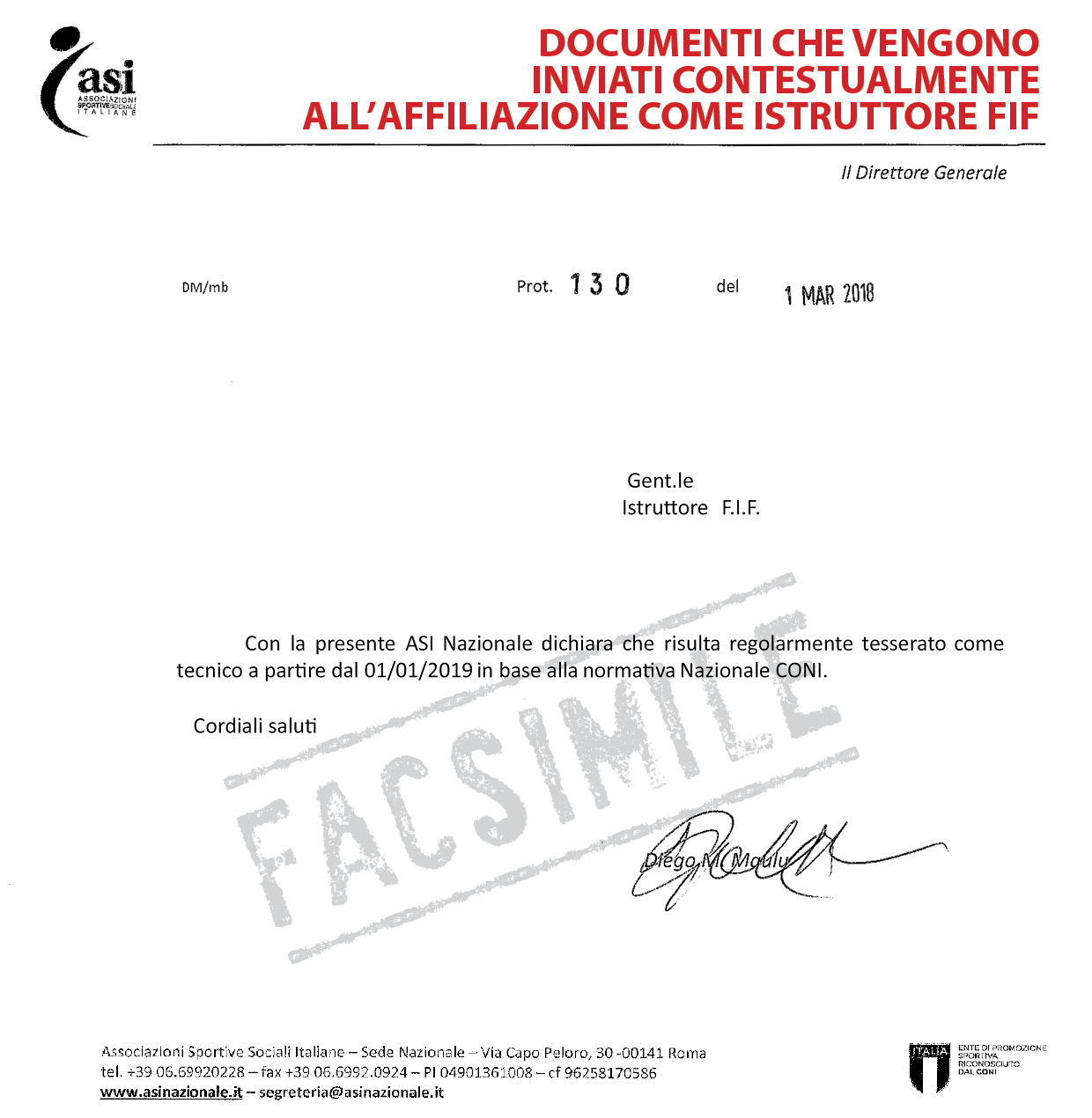Di seguito sono riportati i fac-simile delle dichiarazioni che vengono inviate agli istruttori con diploma FIF regolarmente tesserati per l'anno in corso e che testimoniano la regolarità della qualifica come richiesto dal CONI in base alla normativa nazionale riferita ai requisiti necessari all'insegnamento.