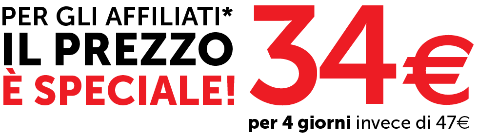 euro 34,00 valido per 4 giorni. Mostrando il tesserino di affiliazione 2019* direttamente alle casse in fiera, il giorno di arrivo, si avrà diritto all'abbonamento ridotto. Questa riduzione è valida solo in fiera, acquistabile solo ed unicamente alle casse di Riminifiera - Italian Exhibition Group S.p.A, oppure è disponibile l'Abbonamento ONLINE, acquistabile sul sito di Riminiwellness a questa pagina.